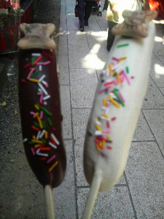 メンバーとご飯を食べたあとだったからお腹すいてなかったんだけど、お祭り気分を味わいたくてやむを得ずチョコバナナを購入(笑)